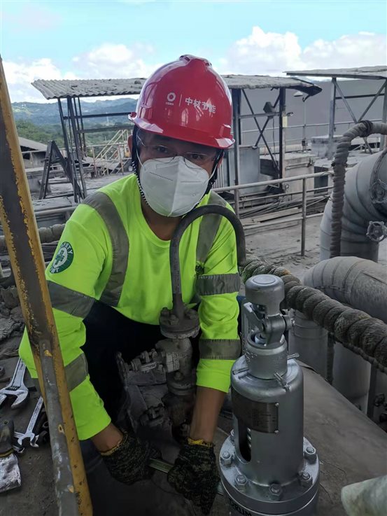 2020年由于突发的新冠疫情,菲律宾实施航空管制和闭关政策,正在国内短暂休假的苗玉民被通知不能返回菲律宾。得知消息后,苗玉民心急如焚,甚至自责的认为,如果不回来休假就好了。为了保证电站安全运营,苗玉民一边与现场菲籍员工视频通讯,反复叮嘱电站操作细节,指导生产运营,一边远程安排电站员工做好疫情防控工作,确保生产、防疫两不误。同时积极与当地中介机构联系办理返回菲律宾的外交批文。他始终保持24小时待机,生怕错过任何一条有效信息。此时对他来说,前往每天确诊病例高达2万的菲律宾不可怕,不能立刻回到现场才最让他忐忑不安。终于,在一年的积极努力下,2021年3月,所有赴菲的批文、背书等材料准备齐全。苗玉民迫不及待的拎着他早已准备好的行李箱,带领5人团队重新起航,返回菲律宾子公司现场。