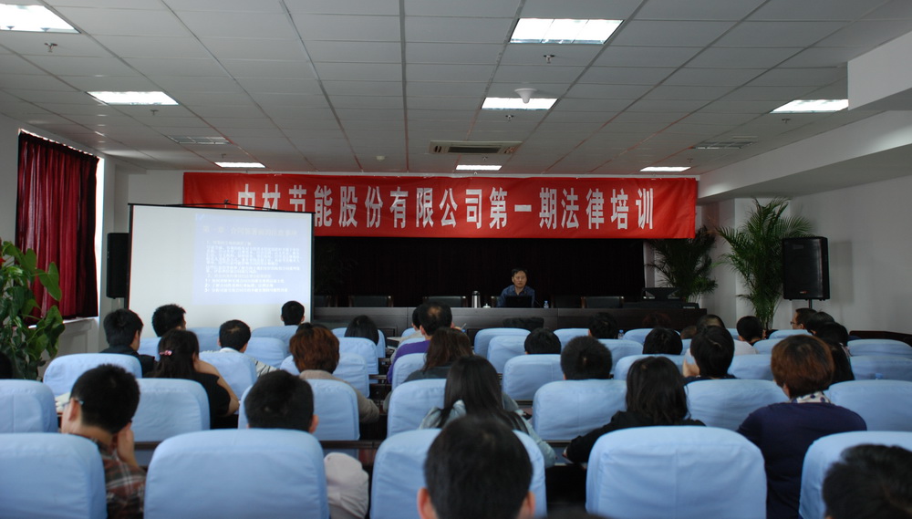 为加强公司管理水平,提高员工风险防范意识,中材节能于2011年5月13日上午组织了第一期法律培训。公司特邀常年法律顾问花新乐律师作专题讲座,公司高管、中层干部及员工共100余人参加培训。