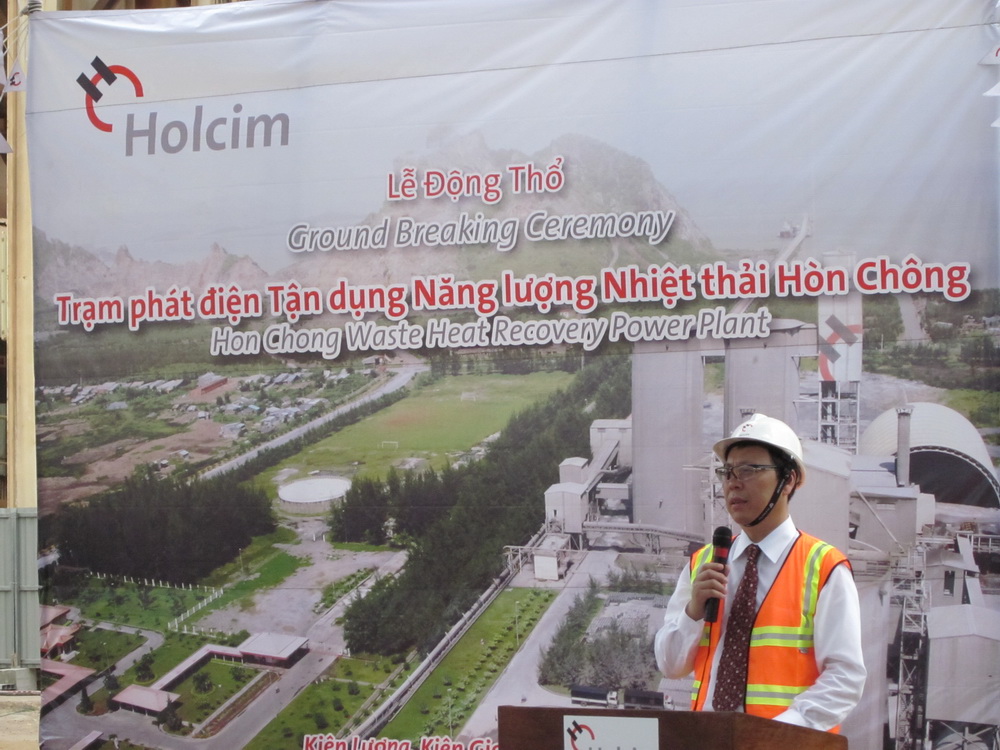 在开工典礼上,Mr.Francois Goulut代表HOLCIM集团对中材节能在执行合同中的诚信作风和双方的强强合作给予了高度的评价,他指出,此电站投运后,不仅为HOLCIM集团创造可观的经济效益,同时还将为当地环境保护做出积极地贡献。