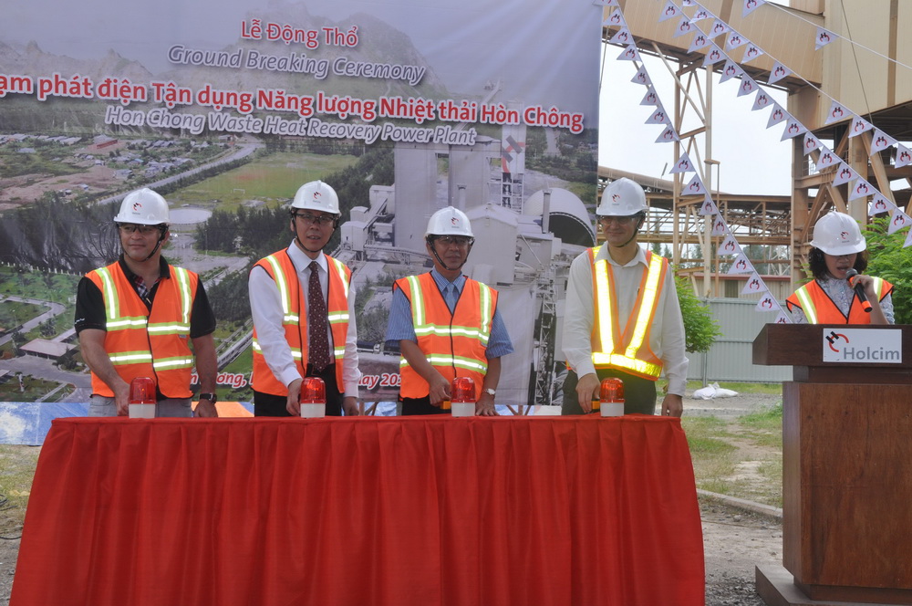 2011年5月26日,由德信控股集团有限公司总承包的越南HOLCIM余热发电项目在越南Kien Giang省的Hon Chong县举行了开工典礼。越南Kien Giang省省长Mr. Nguyễn Trần Nam、越南HOLCIM技术总监Mr.Francois Goulut、Hon Chong水泥厂厂长Mr. Aridavid Lozano与德信控股集团有限公司总裁胡也明一同启动开工按钮,这是中材节能继泰国京都万吨水泥生产线余热发电项目之后与HOLCIM集团的再次合作。