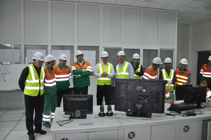 参会领导视查余热发电中控室