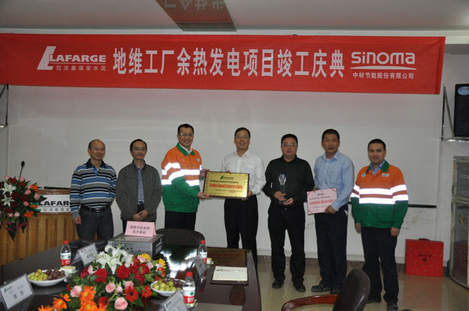 9月20日,德信控股集团有限公司在总承包的重庆拉法基地维EPC余热发电项目竣工典礼上,荣获拉法基安全管理优秀总包商奖。重庆BU总裁熊光炜、工业总监彭立、安全总监陆斌代表拉法基集团向中材节能颁发了奖牌、奖杯和证书。中材节能总裁胡也明、副总裁魏文华、项目经理刘霄、设计经理曲贺等参加了颁奖仪式。