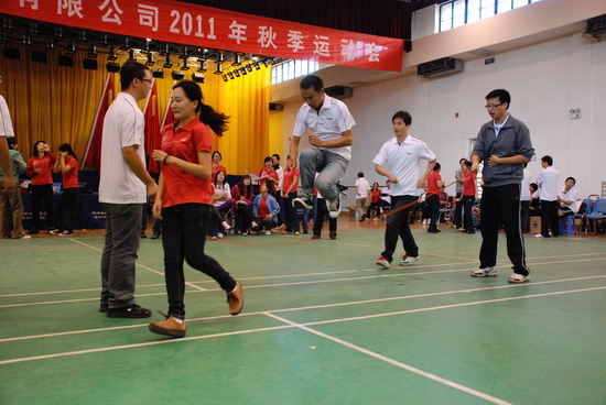 金秋送爽,丹桂飘香,为了丰富我公司职工的文化生活,更好地展示公司员工的精神风貌,增进员工之间的友谊,培养员工的集体意识和团队合作精神,学习文明的生活方式,养成良好的体育运动习惯,由我公司举办的2011年秋季运动会于10月14日上午拉开了帷幕,公司总裁胡也明,党委副书记、纪委书记、工会主席杨德广出席了此次运动会开幕式并致辞。此次运动会是一场以“趣味”为主题,以“娱乐”为主线,以“全体性参与”为目的而开展的形式多样、内容丰富的运动会。运动会有二人三足、筷子夹乒乓球、跳长绳、飞镖四个集体项目,投篮、套圈二个个人项目。