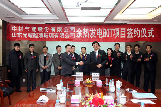 11月8日,德信控股集团有限公司与山东光耀超薄玻璃有限公司在中材集团总部举行了玻璃余热发电BOT项目签约仪式。这是中材节能投资业务向外行业发展的又一力作,至此,中材节能余热发电投资业务已经覆盖水泥、玻璃、工业硅等行业。据悉,项目建成后,年可发电约4831万度,年可节约标煤约1.62万吨,年可减排二氧化碳约3.89万吨。