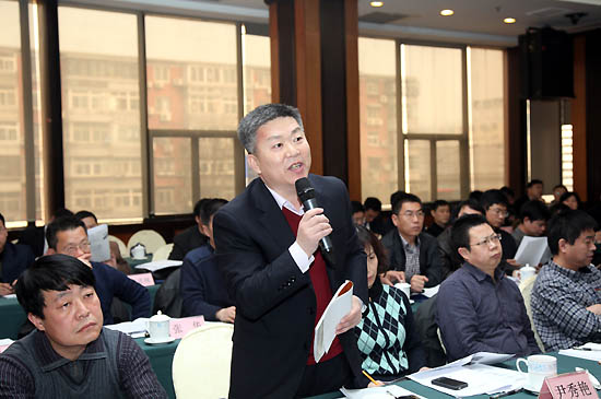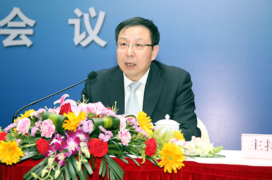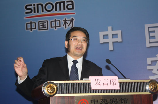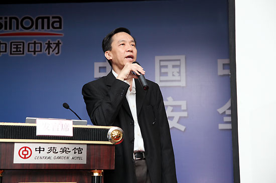中国建筑股份有限公司安全质量环境部副总经理马国荣介绍经验(曹永胜 摄)