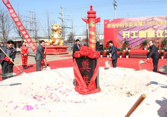 2012年3月11日上午10点18分,德信控股集团有限公司首个玻璃行业余热发电项目——寿光中材节能光耀7.5MW余热发电项目开工奠基仪式在山东寿光隆重举行。