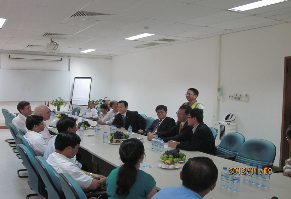中国驻越南胡志明市总领事翟雷鸣先生在参加庆典期间,还特地到项目部驻地慰问了余热发电项目部工作人员,并一起参观了项目现场,听取了项目进展情况汇报。翟雷鸣总领事介绍了中越两国友好关系以及越南经济发展的总体情况,他说,越南国内市场潜力很大,尤其在节能减排方面,希望中材集团及所属企业加大在越南的发展力度,与越南的实力企业保持长期合作,在越南能源等多个领域占有一席之地,为中国企业树立一个合作样板。