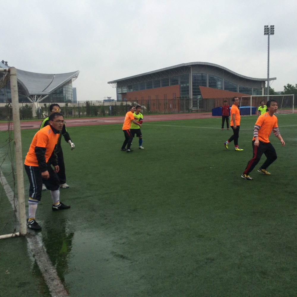 第五场比赛也是本届杯赛最后一场比赛,对手是我们小组赛中已经交过手的中材装备集团队。尽管我们已经在小组合赛中踢过,根据赛程安排,我们彼此以“友谊第一,比赛第二”精神,踢的很认真。最终双方打成1:1,进入点球大战。门将贺伯君的优秀扑救,让我们最终有惊无险的胜出获得本次杯赛季军。这场比赛给人印象深刻的不是双方全力拼抢,而是双方队员在比赛中的享受,大家获得了更多的快乐。