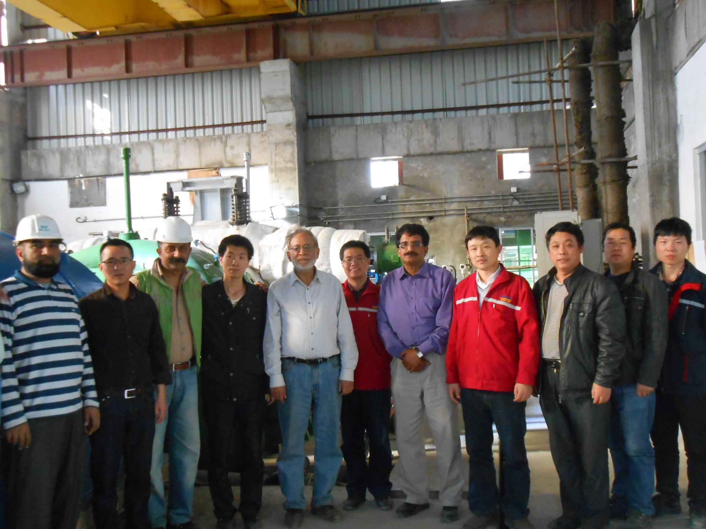 为做好该项目,以项目经理王建峰为首的项目部,在公司技术部、工程部、采购部、费控部、后期服务部等部门大力配合和支持下,克服各种困难,积极应对项目实施中存在的难题。特别是在土建施工过程中,由于土建队伍是当地公司,施工进度缓慢,从2014年1月土建动工,到2015年2月,土建工程才基本完工,严重制约了项目的安装和调试工作。项目部针对这种情况,提出倡议:“大干苦干50天,奋力拼搏工期赶;实现双赢立丰碑,提前发电战困难”。该倡议一经提出得到了业主的积极响应,业主总经理Siddiq先生,每天给他们的主要负责人及项目部发送指令,配合中材节能全力以赴,共克时艰,确保项目力争早日发电。春节期间,公司总裁胡也明亲自到项目部进行慰问,给了项目部员工更大的鼓舞和信心。项目经理王建峰,媳妇剖腹产,可是面对现场繁忙的工作,在第七天出院后于腊月二十八就赶回了现场。现场经理岳远峰,已经是第三个年头在现场过年了,面对汽轮机厂家无法按时达到现场的问题,他毅然承担起了汽轮机调试的重任,他与调试单位密切配合,使汽轮机平稳、安全的运行起来。电气设计工程师王海路,在现场一待就是5个月,任劳任怨,查图纸,跑现场,与业主讨论方案,与厂家沟通,成功的完成了技术指导服务。现场翻译张天玺,从沙特NCC项目赶来,除了做好沟通翻译外,还积极参与项目协调配合工作。后期服务部的杨玉斌与调试单位密切配合,使得调试工作有条不紊的推进。正是项目部员工“舍小家顾大家”的精神,才能实现提前并网发电。