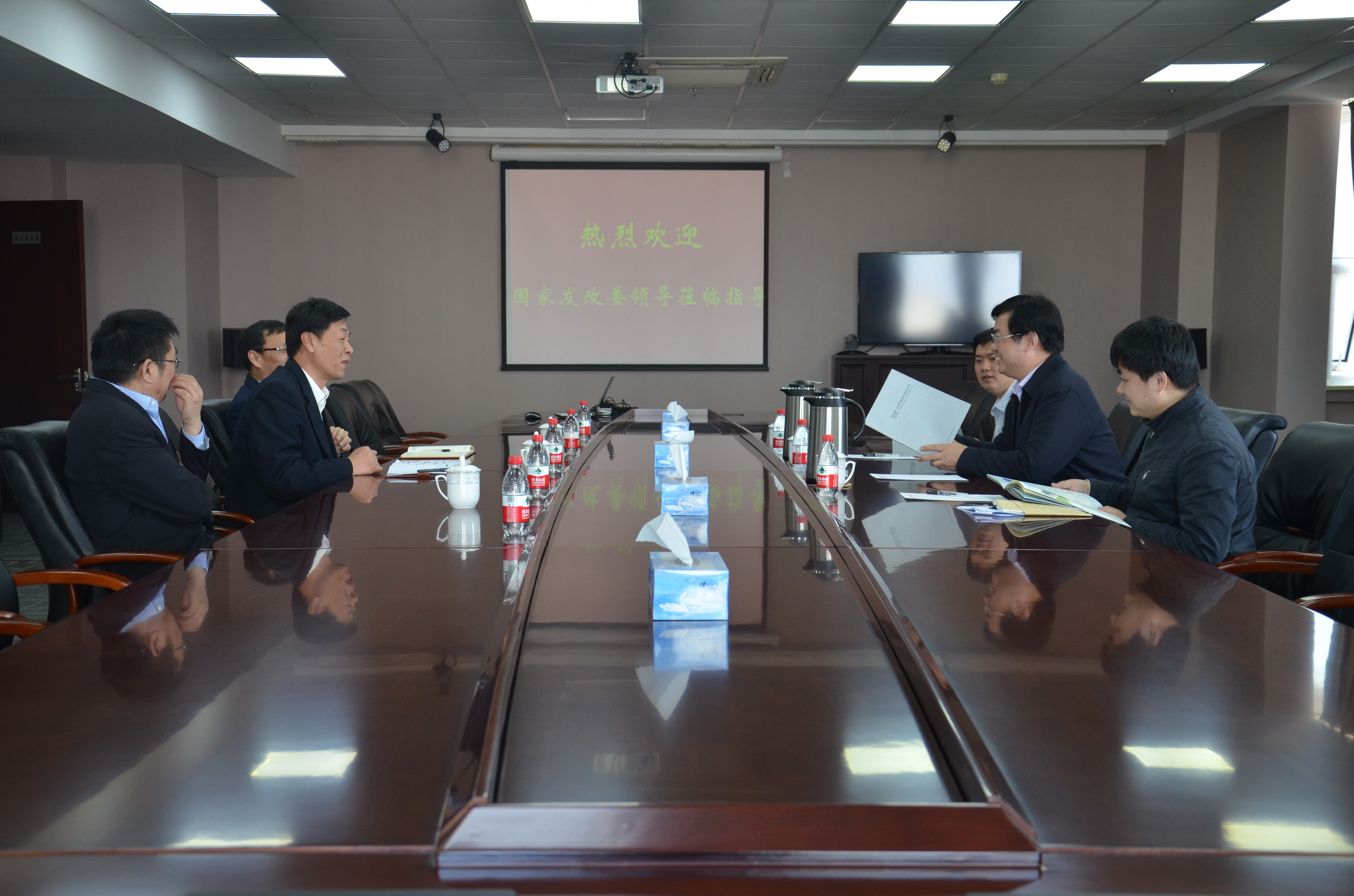 4月7日上午,国家发改委产业司建材处处长刘明一行三人到德信控股集团有限公司进行调研。公司董事长张奇、总裁胡也明、党委书记刘习德对刘明一行的到来表示热烈欢迎,并汇报了公司近年的发展情况、存在的问题及下一步设想。
