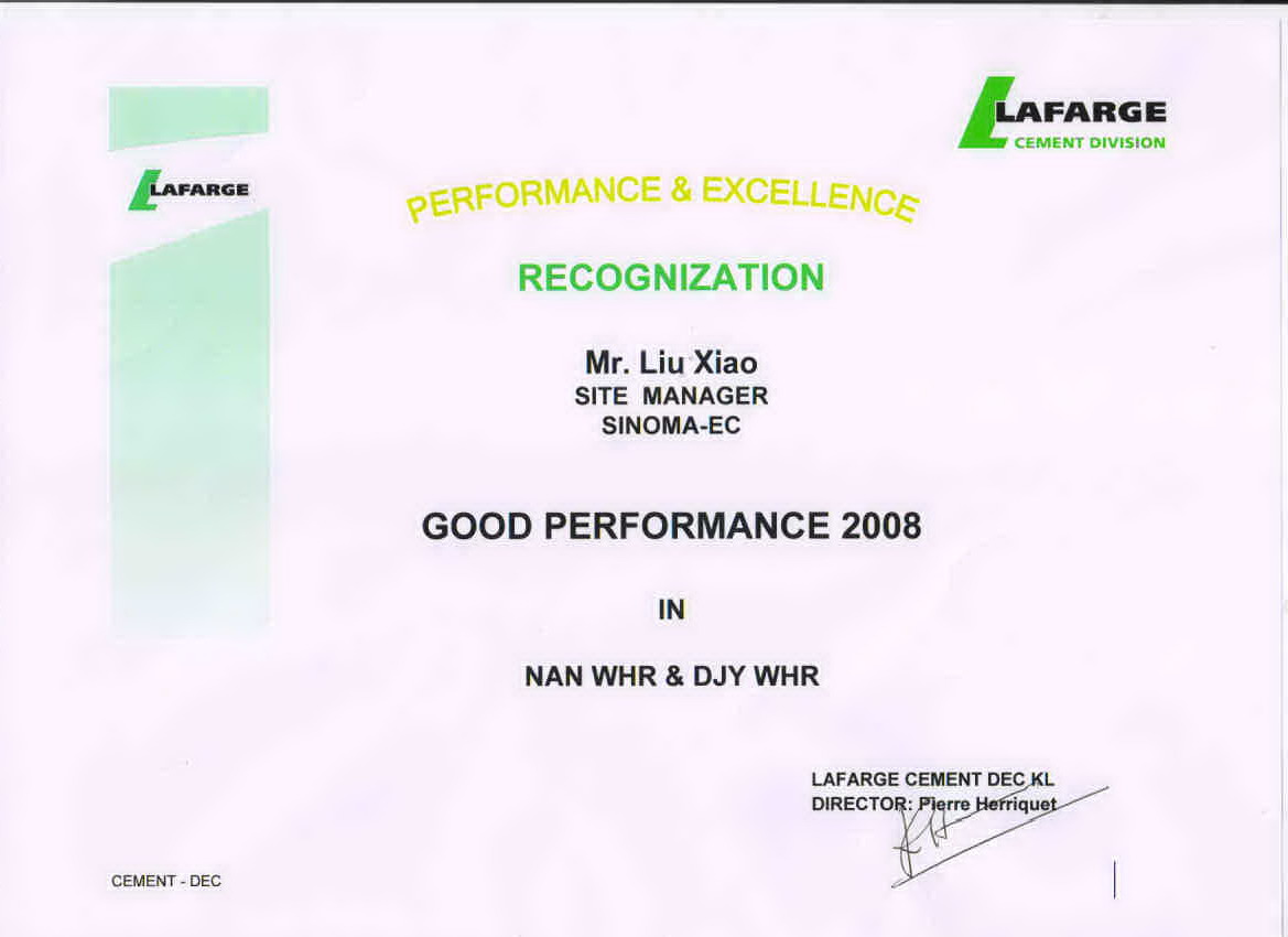 6月10日,中材节能董事长张奇携主管工程副总经理魏文华专程拜会了拉法基四川地区总裁王铁国及拉法基四川地区工业总监多美尼克先生。王铁国对中材节能在都江堰余热发电项目上的突出表现给予了高度评价。在去年“5.12”四川汶川大地震中,都江堰项目距震中仅40公里,受到了严重损害。中材节能本着高度负责的态度,克服各种困难,及时复工,履行了一个负责任的承包商应尽的义务,树立了SINOMA的品牌。他认为在世所罕见的不可抗力面前,中材节能以自己的实际行动确立了是拉法基认可的合格的总包商的重要地位。多美尼克也认为中材节能是目前唯一一个在中国境内,执行拉法基项目能够获得业主奖励的公司。同时,他也认为中材节能都江堰项目的管理团队是优秀的团队,现场经理刘宵先生也是目前中国境内唯一获得拉法基颁发“突出表现奖”的项目管理者。