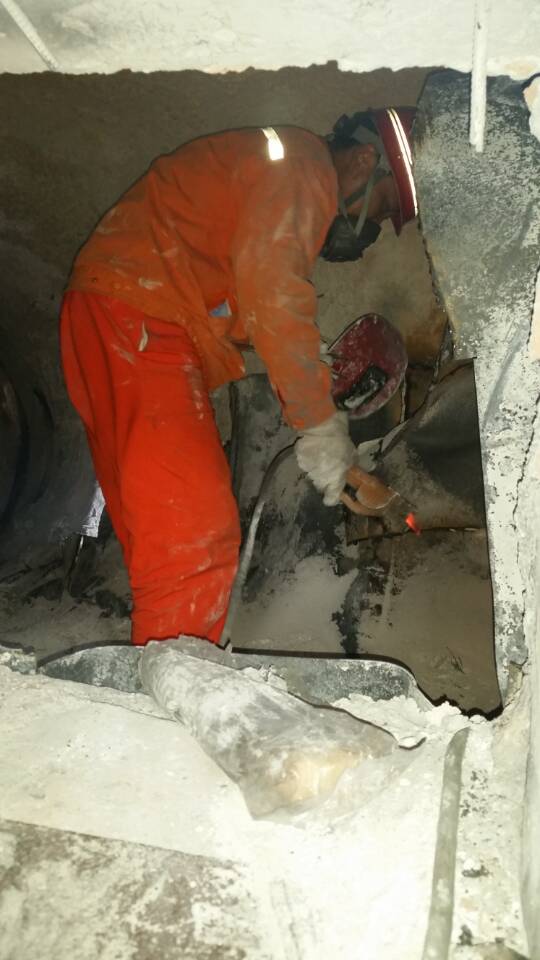 4月30日云南永昌硅业股份有限公司需要进行电网检修工作,因此全厂停电,且正值五一节假日,中材节能龙陵子公司员工主动放弃休假,充分利用此间隙,全力开展对三台锅炉烟管进行清灰工作,并对5#锅炉烟道内衬的不锈钢板变形造成烟道堵塞的情况进行处理,从凌晨4点持续奋战到24点。