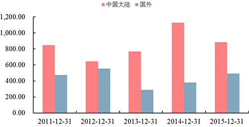 图3:中材节能近五年国内外营收情况(单位:百万元)