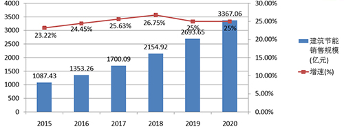 图4:2015-2020年建筑节能市场销售规模及增速预测