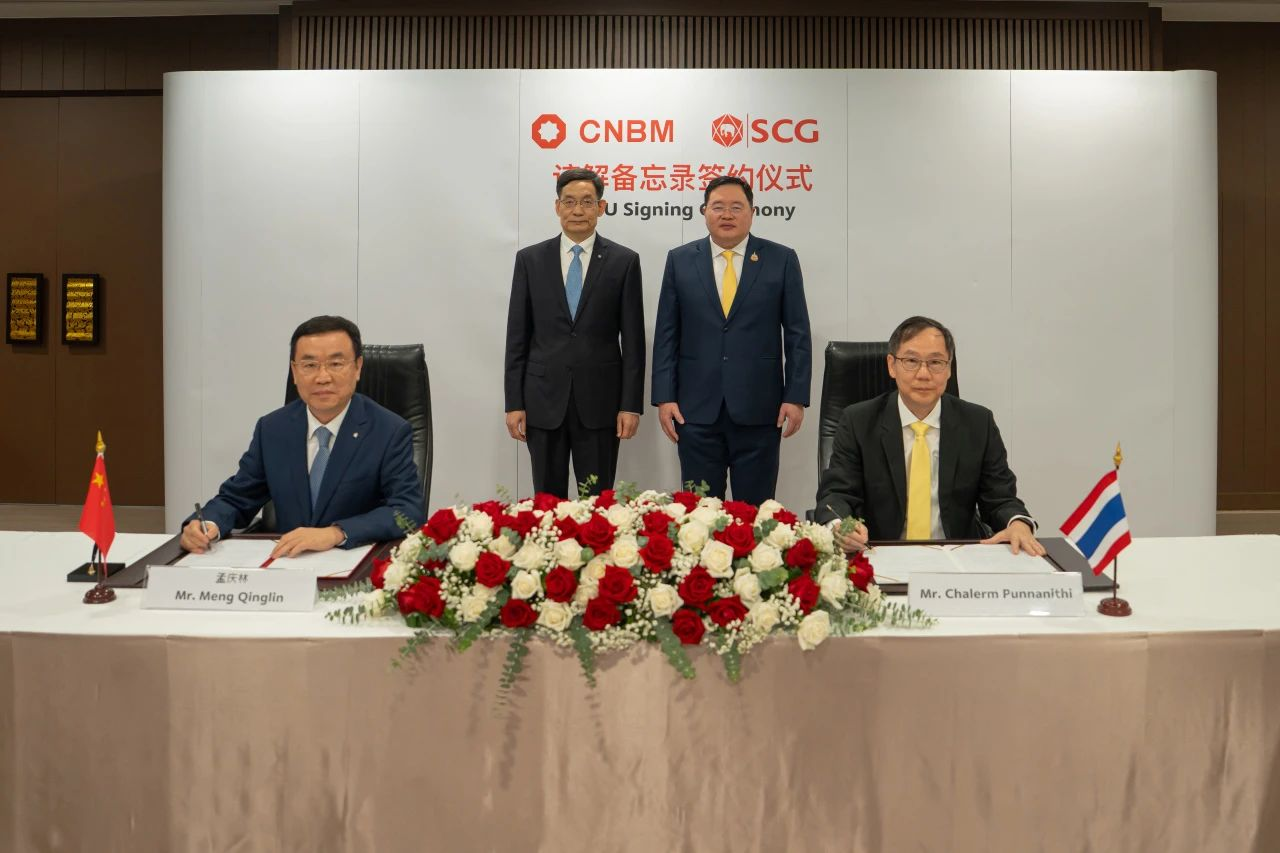 On August 25th, Mr. Zhou Yuxian, Chairman of China National Building Material Group, visited the Siam Cement Group (SCG Group), Thailand's oldest and most comprehensive enterprise group. He held talks with Mr. Thammasak Sethaudom, President and CEO of the SCG Group. Witnessed by leaders from both sides, four subsidiaries under the Group signed Memorandums of Understanding with the SCG Group. Mr. Meng Qinglin, Chairman of Sinoma Energy Conservation Limited, and Mr. Chalermpong Punnamee, Director of Green Industrial Solutions at SCG Group's Eco Factory Services Company, signed an MoU on Green Energy Services. This marks the opening of a new chapter for both parties to further deepen cooperation in the Thai and ASEAN markets and promote high-quality green development.