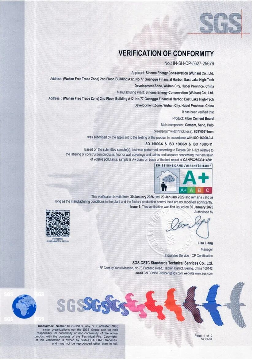 Recently, the Hankun® and Keyan® calcium silicate board/fiber cement board series products have officially passed the authoritative testing by SGS and successfully obtained the French A+ certification, thanks to their exceptional quality and outstanding environmental performance. This achievement adds another highlight to the products' export prospects to developed markets in Europe and America!