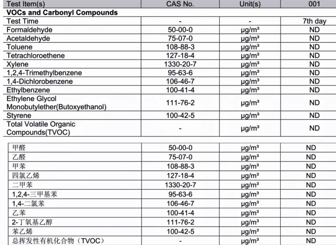 In accordance with the ISO 16000 series standards, this certification involved continuous testing in a sealed chamber simulating real living environments. The tests measured the emission concentrations of ten harmful substances, including total volatile organic compounds (TVOC), formaldehyde, acetaldehyde, toluene, and ethylbenzene. The results for all substances were: ND (Not Detected). This once again verifies the "truly eco-friendly" characteristics of the Hankun® and Keyan® calcium silicate board/fiber cement board series products, which are free from formaldehyde, 100% asbestos-free, and devoid of harmful substances such as benzene.