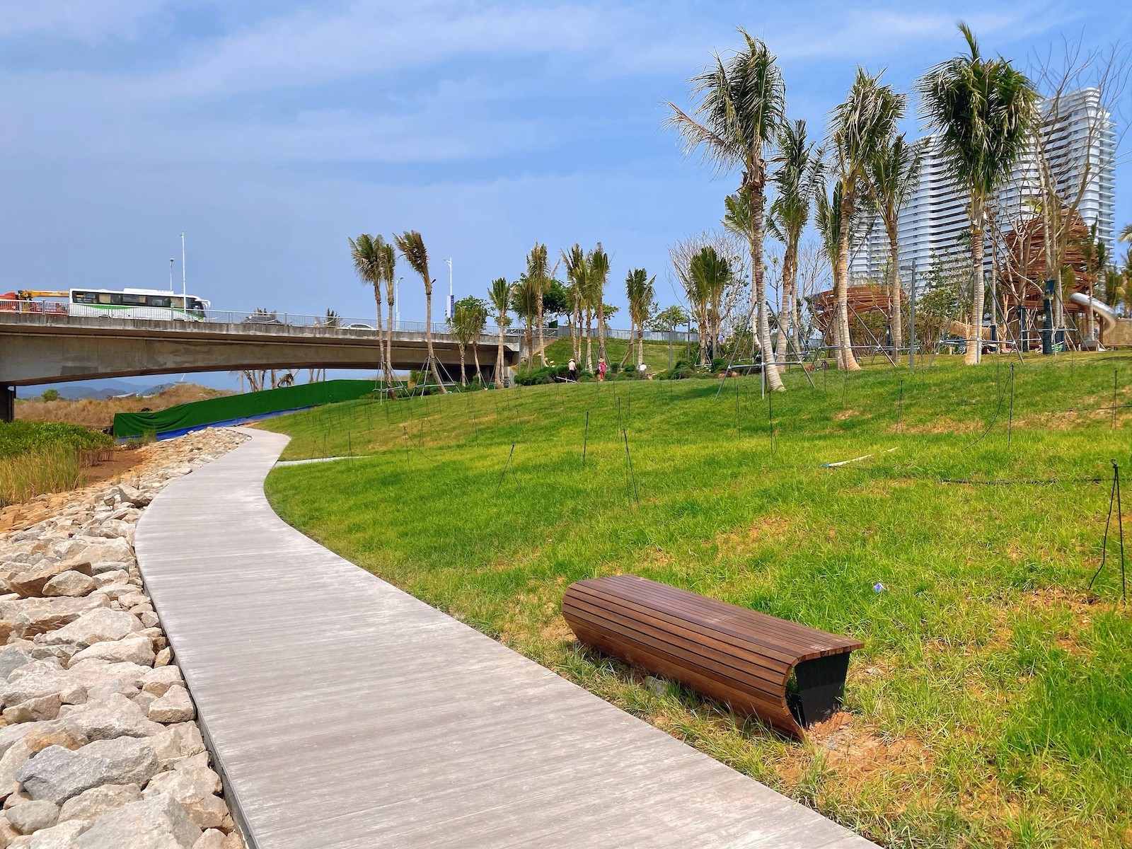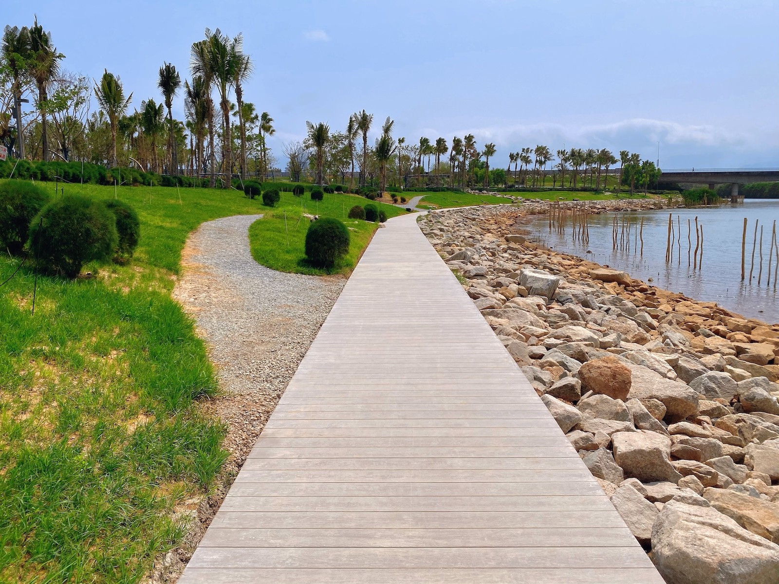 The Sanya Haitang River Comprehensive Treatment Project Start-up Area Project is an important milestone in Sanya's green development strategy. Among them, the sample project of the trestle along the river is built by Sinoma Energy Conservation (Wuhan) Co. (hereinafter referred to as "Energy Saving Wuhan"). Energy Saving Wuhan practices the corporate mission of "materials create a better world", actively responds to and promotes the ecological management of the whole area of the river, and chooses the self-developed and self-researched and self-produced Sinoma Hankun® palisade boards, so as to integrate the green space along the river, enhance the vitality of natural ecology with the green environmental protection products, harmonize the landscape and the environment, and contribute to the health and sustainable development of the city. We will contribute to the health and sustainable development of the city. Sinoma Hankun® pallet board is a new type of green board with natural cedar texture on the surface, integrating green environmental protection, Class A fire prevention, moisture and moth proofing, convenient installation and other excellent properties; as the best alternative to wood materials and wood-plastic products, it has better weather resistance and economy, and has been used as the best alternative to wood and plastic products. As the best alternative to wood and wood-plastic products, it has better weather resistance and economy, and has been widely used in landscape projects.