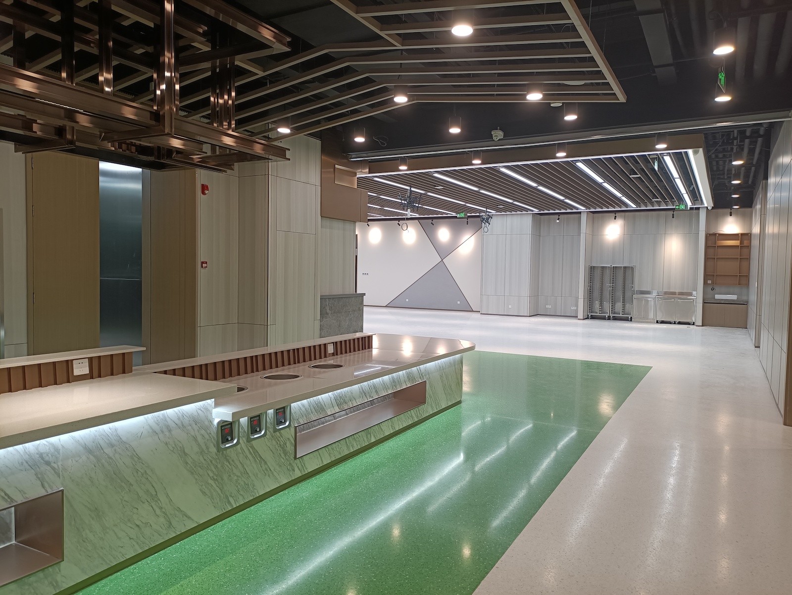 Sinoma Hankun® fire-resistant decorative panels are used as the interior wall decoration material for the staff cafeteria of China National Building Materials Federation. Sinoma Hankun® fire-resistant decorative panels are made of high-density non-asbestos calcium silicate board substrate with decorative surface layer and protective layer by professional equipment through high temperature and high pressure. It is a green building material product that combines fire resistance, environmental protection, easy cleaning and fast modular installation. With its superior characteristics, it is perfectly suitable for schools, hotels, office buildings and other architectural fields that have high requirements for fire prevention, environmental protection and fast installation.